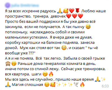 Помимо рекомендаций по тренировкам, в клубе вы получаете вдохновение, комплименты и поддержку от других участниц.